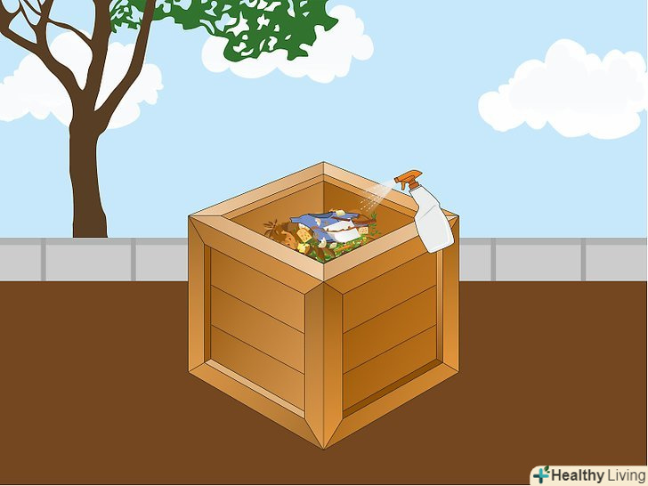 Слідкуйте за тим, щоб компост був вологим. щоб органічні речовини розкладалися швидше, їм потрібно контактувати з вологою. Найпростіше буде обприскати кожен шар відходів невеликою кількістю води при спорудженні купи. Додайте води або вологих зелених відходів, якщо купа здається сухою. Якщо купа вийшла занадто вологою, додайте сухих коричневих відходів. [9]- У суху погоду наливайте у відро з відходами воду перед тим, як перекласти відходи в купу. Завдяки цьому купа буде зволоженою.