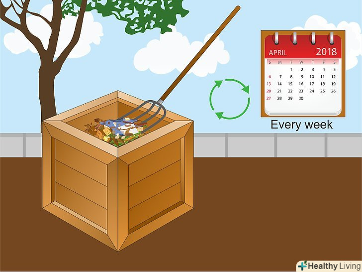 Перевертайте купу раз в 1-2 тижні. важливо регулярно перемішувати компост, особливо якщо ви додаєте нові харчові відходи, які можуть почати пахнути, якщо їх не змішати з іншим сміттям. Завдяки перевертання в купі починають рости потрібні бактерії і з'являється солодкий запах, а процес розкладання прискорюється.