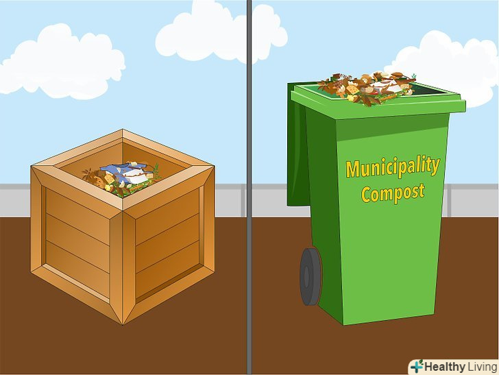 Беріть участь в муніципальних програмах компостування, якщо не можете виробляти компост самостійно. безумовно, виробляти свій власний компост зручно, але якщо у вас немає такої можливості, збирайте органічні відходи в спеціальні ящики, якщо у Вашому населеному пункті органічне сміття можна збирати окремо. Відходи з цих ящиків надходять на спеціальні підприємства, де виробляють компост. [3]- Харчові відходи найкраще збирати в окремий сміттєвий бак, оскільки вони можуть гнити і видавати неприємний запах.