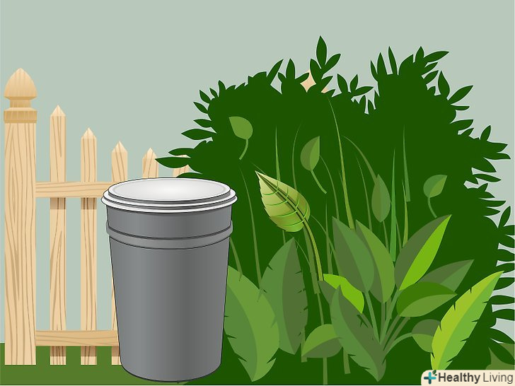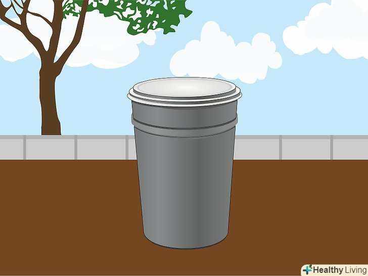 Купіть готову ємність для компостування. Якщо ви не хочете витрачати час на підготовку місця, купіть готову ємність в магазині товарів для саду та городу. Як правило, ємності мають циліндричну форму і робляться з пластика. Зверху у них є кришка, а знизу немає дна. Це дешеві пристосування, які не вимагають підготовки.- Пластикові ємності захищають компост від шкідників та інших тварин, які можуть забратися в ваш сад. Якщо у ємності немає кришки або короткі краї, компост буде залучати тварин.