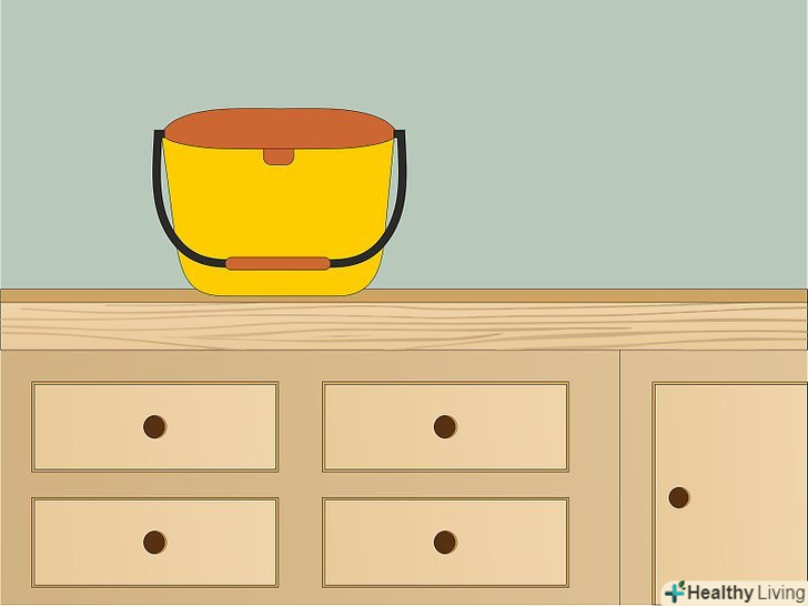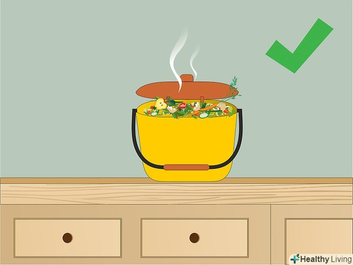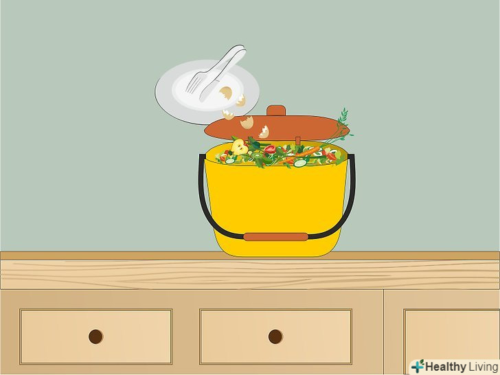Купуйте невелику ємність для використання вдома. поставте окремий маленький бак для харчових відходів на кухні. Його повинно бути легко наповнювати, щодня переносити до компостної купі і мити. Можна використовувати звичайний маленький пластиковий контейнер (наприклад, маленьке відро для сміття з кришкою) або керамічну миску з блюдцем замість кришки. [5]- Поставте ємність в зручне місце, щоб їй могли користуватися ви і всі члени вашої родини.