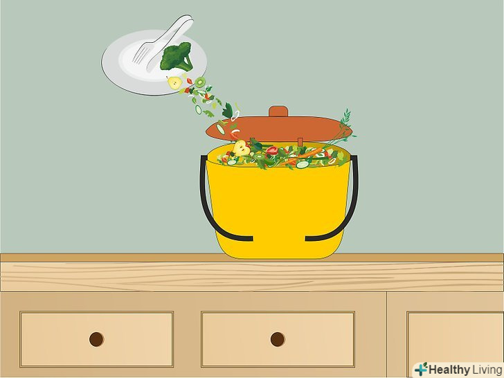 Вирішіть, як ви будете використовувати харчові відходи. перш ніж почати збирати харчові відходи, важливо вирішити, чи будете ви здавати їх або будете переробляти самостійно. У домашніх умовах можна переробляти більше видів харчових відходів. [4]- Викидати в баки для органічних відходів можна все біорозкладані харчові відходи, включаючи м'ясо і молочні продукти.