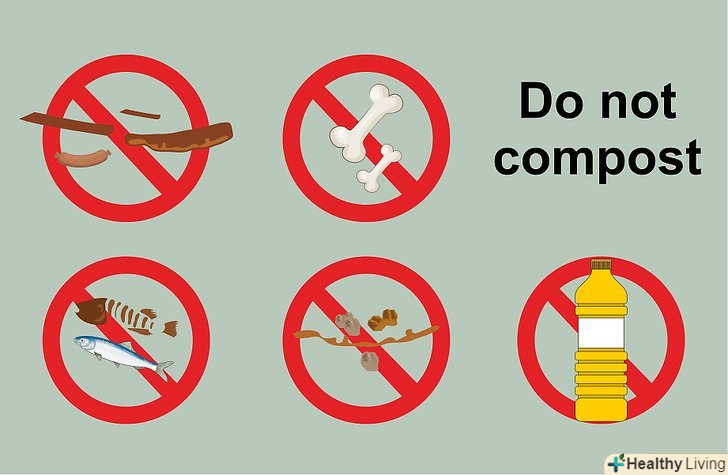Не кладіть екскременти тварин в компост. технічно компостувати фекалії собак можна, однак це робиться тільки в спеціальних умовах (наприклад, вони можуть збиратися в спеціальні ящики на майданчиках, відведених під вигул собак). Не використовуйте компост з фекаліями собак для удобрення грунту біля городів і фруктових садів. Дізнайтеся, чи планується установка спеціальних баків для фекалій собак у Вашому місті.- не можна додавати фекалії тварин, які їдять м'ясо, в компост. Фекалії травоїдних тварин підходять для компостування, однак екскременти свиней, собак, кішок та інших м'ясоїдних тварин можуть заразити компост і рослини хворобами, які передаються через їжу.
