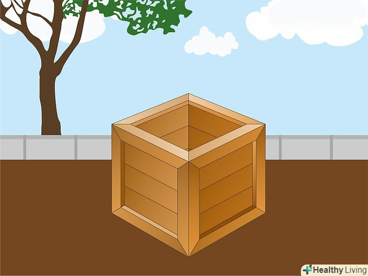 ЗробітьКомпостний ящик самостійно. якщо ви хочете мати ємність певного розміру або форми, зробіть її самі. У багатьох будівельних магазинах продаються дерев'яні каркаси для таких ящиків і бічні стінки з дерева або сітки. Оптимальніше всього буде зробити ящик з об'ємом не менше 1 кубічний метр, оскільки так ви отримаєте достатню кількість компосту, не займаючи великої площі в саду.- 1 кубічний метр-це 1000 літрів.