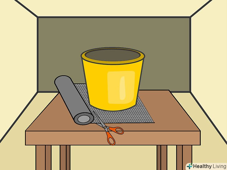 Постеліть на дно горщика скловолокно. придбайте в магазині господарських товарів невеликий рулон скловолокна або пластикової плівки для вікон. За допомогою технічних ножиць виріжте лист плівки. Він повинен бути трохи ширше, ніж дно горщика, і повторювати його форму. Покладіть вирізаний лист на дно горщика. [6]- Скловолокно або пластикова плівка на дні горщика не дадуть воді вимивати грунт. Крім того, вони допоможуть утримати поблизу коренів більше поживних речовин.