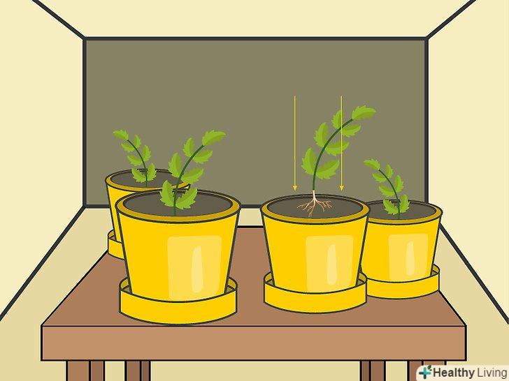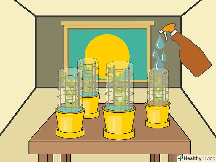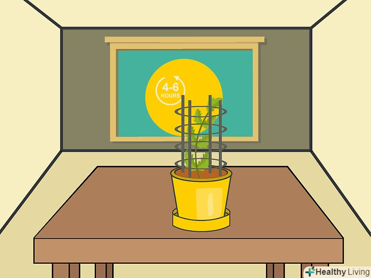 Розмістіть горщик так, щоб він був освітлений сонцем 4-6 годин на день. для нормального росту і врожаю помідорів необхідно перебувати на сонці 4-6 годин в день. Можна поставити горщики на візок і викочувати її на вулицю в сонячну погоду. Можна також встановити над горщиками лампи денного світла. [13]- Встановлюйте лампу денного світла на відстані не менше 15 сантиметрів від горщика, щоб не обпекти рослини.