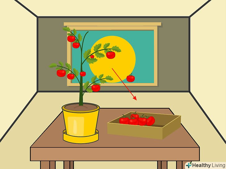 Яскраві і соковиті помідори добре підходять для вирощування в горщиках. Томатам потрібні великі горщики і решітка або що-небудь інше, до чого можна підв'язати рослина. Перш ніж садити помідори, підготуйте горщики і грунт. Після посадки помідорів подбайте про те, щоб їм вистачало сонячного світла і води. Як правило, урожай можна збирати через 45-80 днів після посадки. [1]