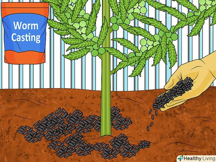 Удобрюйте грунт вермикомпостом. у вермикомпості містяться корисні для грунту поживні речовини. Купуйте його в місцевому садівничому магазині або почніть самостійно виробляти добриво на своїй черв'ячній фермі. Розподіліть вермикомпост по землі, щоб удобрити її. [11]- Вермикомпосту повинно бути достатньо, щоб покрити грунт тонким шаром добрива.