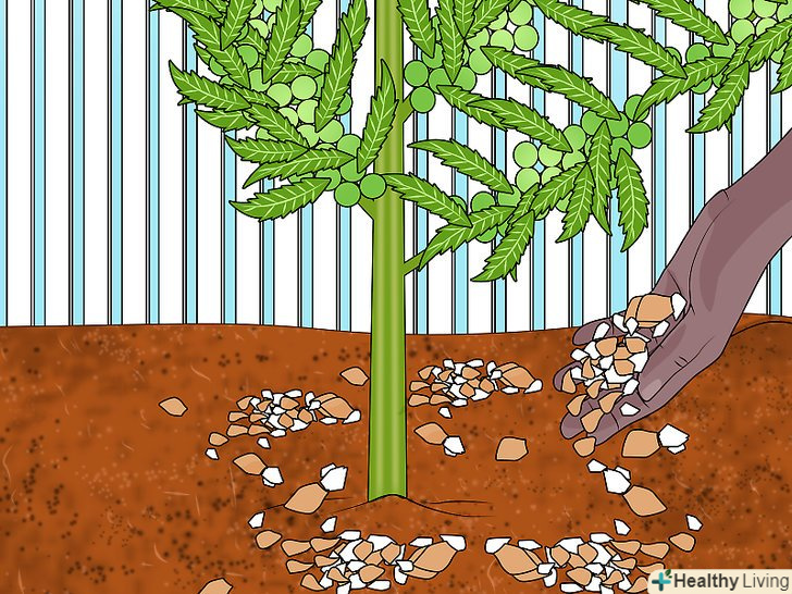 Додайте в грунт яєчну шкаралупу. в яєчній шкаралупі містяться такі корисні для рослин поживні речовини, як азот, фосфорна кислота і кальцій. Роздушіть шкаралупу в старій кавомолці і розсипте її по землі. [3]- Візьміть за звичку раз на тиждень додавати в землю розчавлену яєчну шкаралупу. Для гарного росту коріння рослини потрібен постійний приплив кальцію, який можна знайти в яєчній шкаралупі.