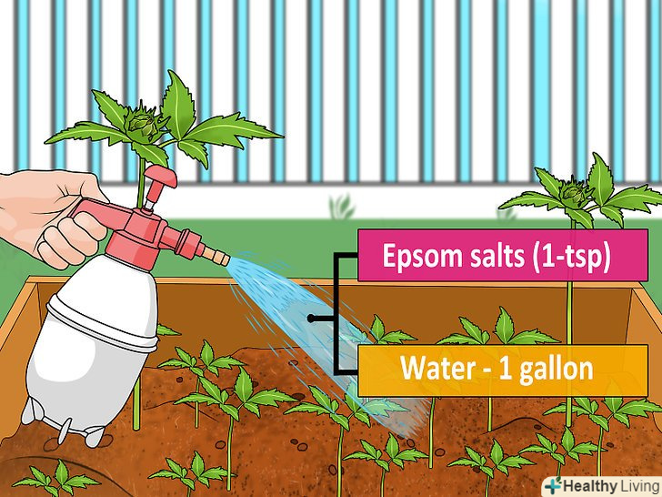Полийте рослини розчином з англійською сіллю. англійська сіль відмінно підходить для стимулювання росту рослин і проростання насіння. Розчиніть 1 столову ложку (17 г) англійської солі в 4 л води. Вилийте розчин в пляшку і обприскати листя рослин розпилювачем. [5]- Англійська сіль також поліпшить ріст плодів і квіток троянд, помідорів, перцю, картоплі і кімнатних рослин.