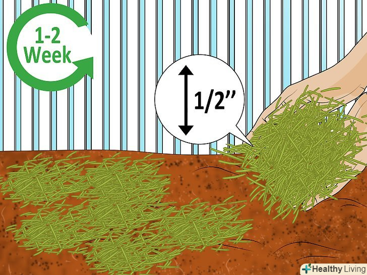 Використовуйте скошену траву. з скошеної трави виходить відмінне органічне добриво, оскільки вона постачає грунт вологою і не дає з'явитися бур'янам. Використовуйте свіжоскошену траву з галявини, яку не обробляли гербіцидами. Щоб використовувати траву в якості добрива, розсипте по землі шар приблизно в 1,3 см скошеної трави. [6]- Залежно від того, скільки трави у вас росте, можливо, вам вдасться використовувати її в саду кожні 1-2 тижні.