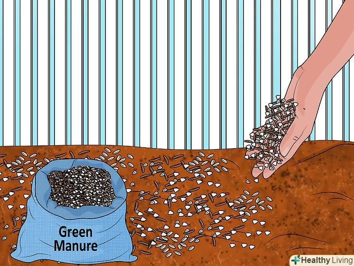 Приготуйте зелене добриво з рослин. зелене добриво-це корисне, натуральне добриво для саду. Змішайте пшеницю, овес, жито, конюшину, горох, вику, гречку і садові боби. Потім розподіліть це добриво по грунту в саду. Робіть це один раз за сезон. [7]- Інгредієнти для зеленого добрива можна купити в місцевому садівничому магазині або замовити онлайн.