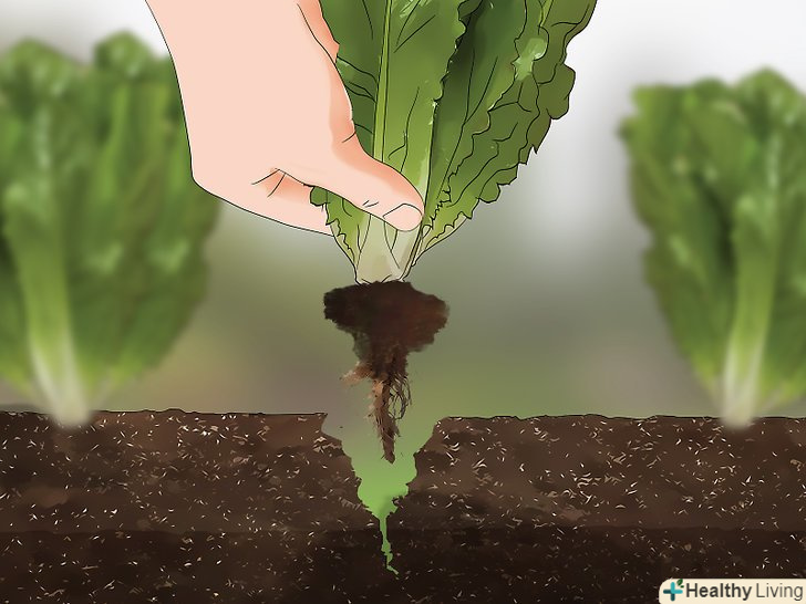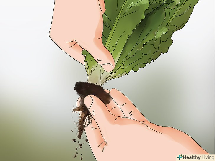 Розбийте грудки землі, що прилипли до коріння. щоб відновити грядку і не занести в будинок бруд, приберіть з коренів всю землю. Це можна зробити вручну, після того як витягніть салат з землі. [5]- Коли витягніть салат разом з коренем, поверніть землю на місце, щоб в саду не з'явилися ямки.