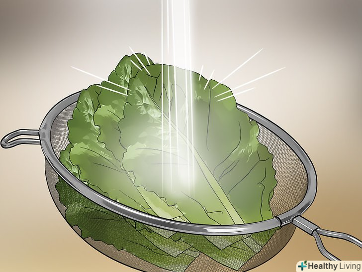 Розламайте головку салату і промийте листя по одному. після того як ви занесете головку салату в будинок, вам потрібно буде відірвати від неї кожен листочок. Промийте кожен листочок під холодною водопровідною водою.- Подайте Ромен відразу, приготувавши з нього Садовий салат, або приберіть листя в герметичний пакет і зберігайте до 10 днів в холодильнику.