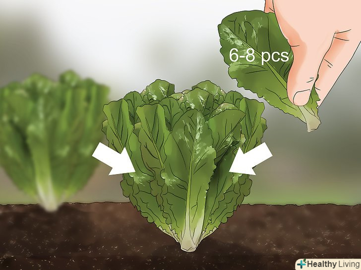 Відірвіть 6-8 зовнішніх листочків, щоб продовжити урожай. якщо вам потрібні тільки зрілі листя, виберіть тільки 6-8 зовнішніх листочків з головки. [7] перевага цього методу полягає в тому, що ви зможете довше насолоджуватися урожаєм, так як кожному набору внутрішніх листочків для дозрівання знадобиться приблизно ще 1 тиждень.- Недоліком цього методу є те, що кожен такий урожай буде досить мізерним.