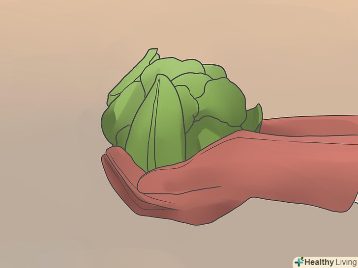 Збирайте урожай тоді головки стануть великими, білими і міцними. після відбілювання продовжуйте доглядати за рослиною як зазвичай, час від часу знімаючи Лисяча навколо головки, щоб стежити за її зростанням і створити можливість видалення води після поливу. Коли головка стане великою (близько 6 дюймів (15,2 см) в діаметрі), білою і міцною, її можна зрізати. Робити це потрібно в період від декількох днів до декількох тижнів після відбілювання, в залежності від клімату (в жаркому кліматі зростання як правило відбувається швидше). Зріжте ножем головку з основи рослини залишивши для захисту головки кілька листя. Сполосніть, висушіть, видаліть листя і насолоджуйтеся.- Цвітну капусту можна зберігати за допомогою різних способів. У холодильнику вона буде зберігатися близько тижня, для довгострокового зберігання її можна заморозити або засолити. Як варіант, цвітну капусту можна вирвати з корінням і зберігати в підвішеному вниз головою стані протягом місяця. [13]