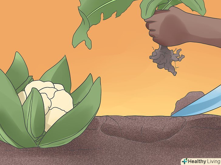 Запобігайте чорну ніжку за допомогою чергування культур. іншим поширеним захворюванням є чорна ніжка. Чорна ніжка викликає нерівномірні сірі ураження або отвори, іноді супроводжується кореневою гниллю. Як і Кіла, дане захворювання важко лікувати, тому найкращим варіантом є превентивні заходи. Зокрема, ефективним методом зниження ймовірності захворювання чорною ніжкою є чергування культур. Не висаджуйте цвітну капусту (або інші рослини сімейства Капустяні) на одному і тому ж місці більше одного року – це дасть залишився в грунті грибку рік, щоб померти.- Крім того, в разі чорної ніжки потрібно буде витягти всі залишки рослин, що залишилися в грунті. Такий відмерлий або відмираючий рослинний матеріал може містити в собі живий грибок протягом місяців, що призведе до рецидиву захворювання на майбутньому врожаї в наступному році. [16]