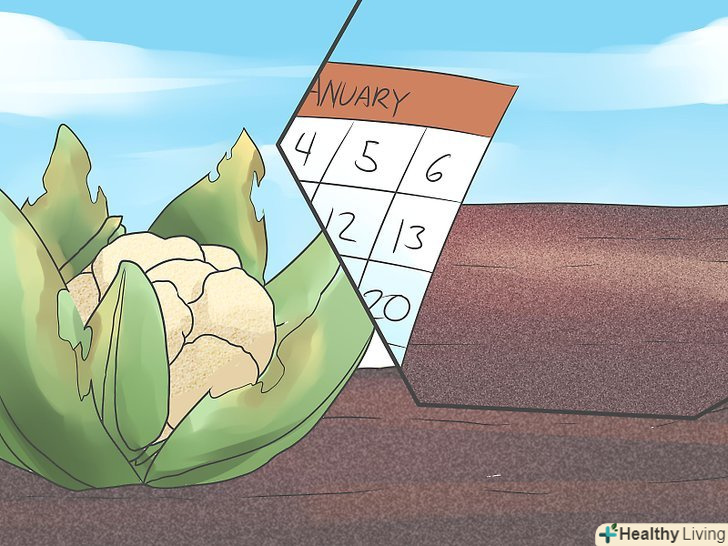 Заплануйте посадку цвітної капусти таким чином, щоб в процесі росту вони застали прохолодну погоду. більшість різновидів цвітної капусти для правильного дозрівання вимагають 1,5 - 3 місяців стійкої прохолодної погоди. В ідеалі, температура повітря вдень в період її дозрівання повинна становити близько 15,5 o C. [1] це означає, що в залежності від типу клімату в місці вашого проживання, вам потрібно буде висаджувати кольорову капусту в різний час. Як правило, городники в областях з теплим кліматом повинні планувати посадку цвітної капусти так, щоб прибирати її навесні, тоді як садівники в місцевостях з більш прохолодним кліматом повинні висаджувати її для прибирання восени. Далі наведені більш детальні плани ВИРОЩУВАННЯ:- для теплих регіонів