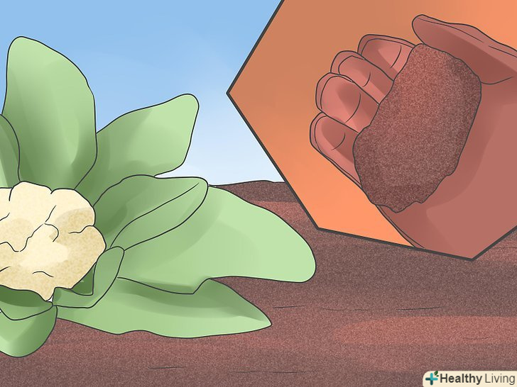 Виберіть місце для зростання, що знаходиться на відкритому сонці хоча б 6 годин на добу. хоча цвітна капуста і вимагає прохолодної погоди, як не парадоксально, їй потрібна значна кількість сонячного світла вдень. Виберіть в городі таку ділянку для посадки, який знаходиться на відкритому сонці і не затінений деревами, високою травою або іншими посадженими вами рослинами.- Вам також слід забезпечити побільше вільного простору для зростання цвітної капусти. У загальному випадку, рослини цвітної капусти слід розташовувати на відстані 18-24 дюймів (45-60 см) один від одного. [2]