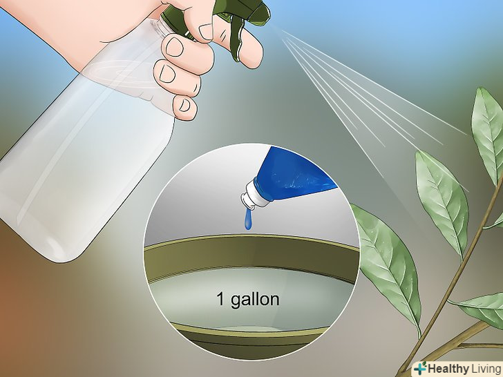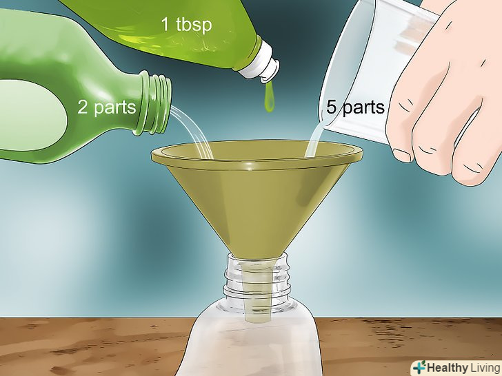 Помийте рослини мильним розчином. видавіть велику краплю мила для посуду в 4 літри води і як слід перемішайте. Приділяйте особливу увагу нижній стороні листя, де найчастіше мешкає білокрилка. Врахуйте, що даний метод вбиває лише дорослих комах. Мийте листя раз в 3-4 дні, щоб знищити нових білокрилок, тільки що вилупилися з кокона. Залежно від виду білокрилки може знадобитися мити листя протягом декількох тижнів, щоб позбутися від шкідників.- Якщо ви використовуєте концентрований мильний розчин, намагайтеся наносити його в кінці дня, щоб уникнути опіку листя.