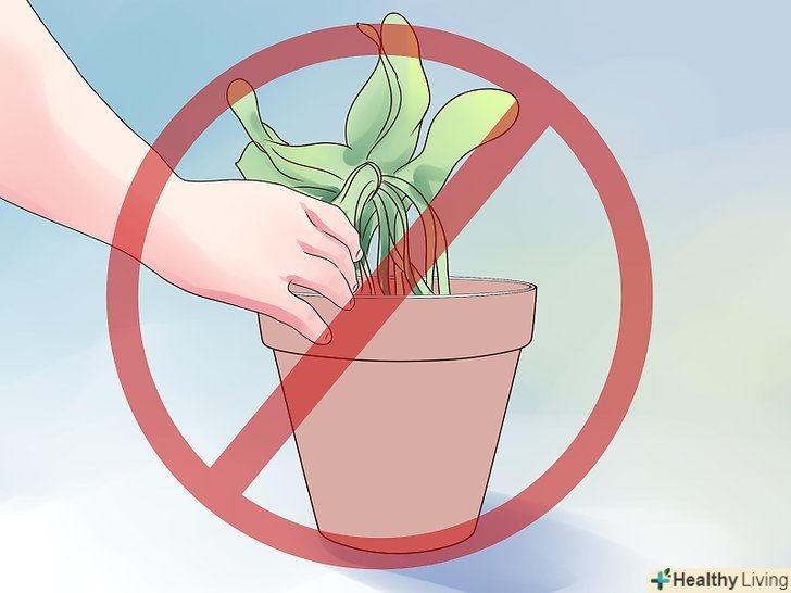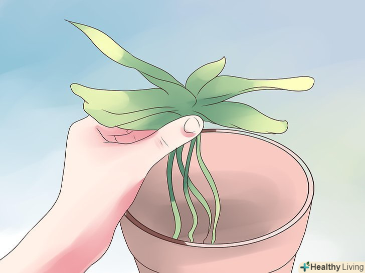 Насипте в горщик посадковий матеріал. присипте коріння, потрясіть горщик і поплескайте по ньому, щоб посадковий матеріал рівномірно ліг навколо коренів. Якщо ви придавлює грунт руками, дійте обережно, щоб не пошкодити здоровим коріння. Переконайтеся, що ніде не залишилося великих пустот. Якщо будь - які з коренів залишаться неприкритими, вони не дадуть потрібного зростання.- Зручніше насипати посадковий матеріал частинами. Утрамбуйте пальцями коріння, потім підсипте ще суміші і так далі.