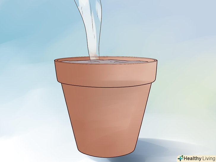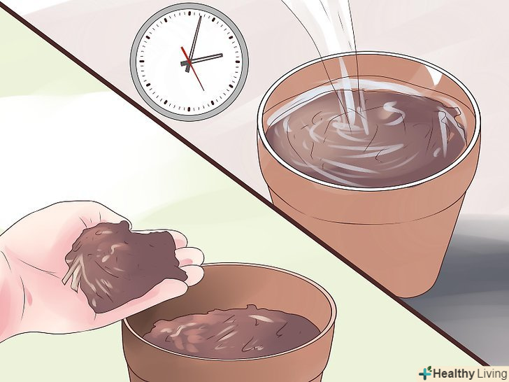 Залийте посадкову суміш гарячою водою. Не бійтеся, наповніть відро або чашу з сумішшю водою до самого верху. Не використовуйте холодну воду, так як посадковий матеріал гірше її вбирає. Перед пересадкою переконайтеся, що грунт має кімнатну температуру.