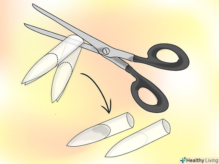 Купуйте упаковку білих штучних нігтів. чим більше вони відповідають природному кольору ваших зубів, тим краще. Ви можете розфарбувати їх, але це буде не дуже приємно на смак і може стертися зі слиною. Якщо ви не знайдете білих, шукайте зразок світло-тілесного кольору.- Стандартний набір з аптеки підійде - для цього не потрібно щось особливе! У будь-якому випадку, вам знадобиться тільки дві штуки з упаковки.