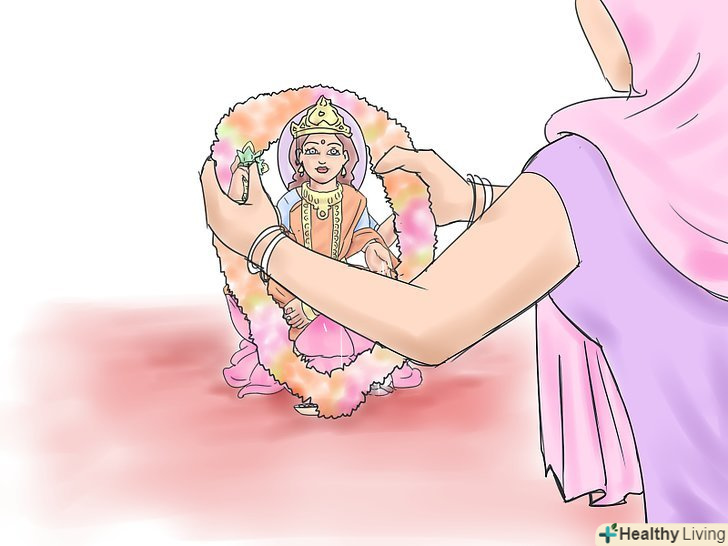 Піднесіть квіти. після молитви принесіть в жертву богині квіти і зерна рису.