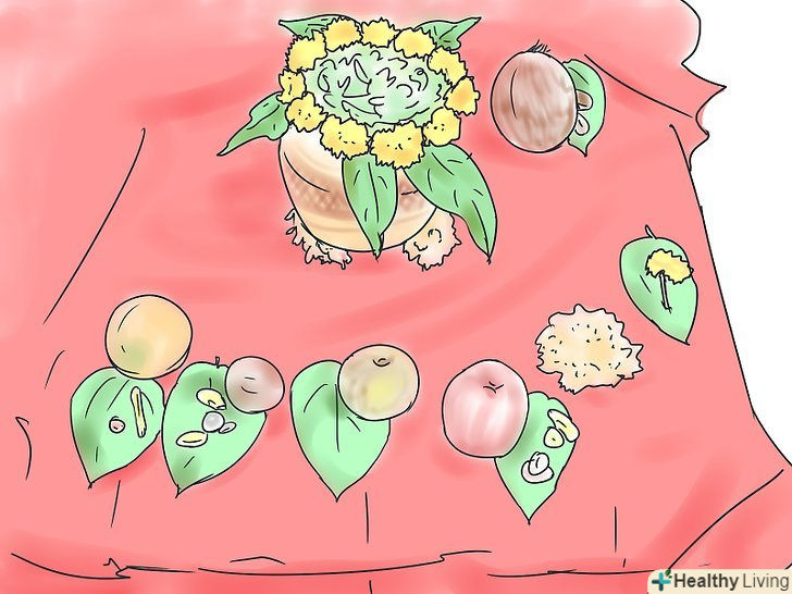 Приготуйте поміст. розстеліть червону тканину на узвишші і поставте в центрі жменю зерна.