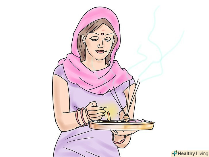 Процитуйте мантру Дівалі Пуджа. Візьміть трохи рису і квітів. З'єднайте руки і закрийте очі. Цитуйте мантру Дівалі пуджа богині Лакшмі або просто повторюйте її ім'я і медитуйте кілька хвилин, щоб викликати її.