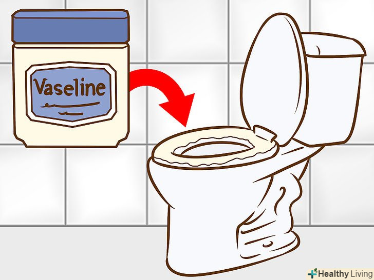 - Наносите вазелін в рукавичках, тому що він дуже липкий і маслянистий, до того ж, швидше за все, вам не захочеться обмазувати сидіння унітазу голими руками. Нанесіть на сидіння унітазу трохи вазеліну. Шар повинен бути тонким, щоб його не було помітно. Постарайтеся зробити його рівним.