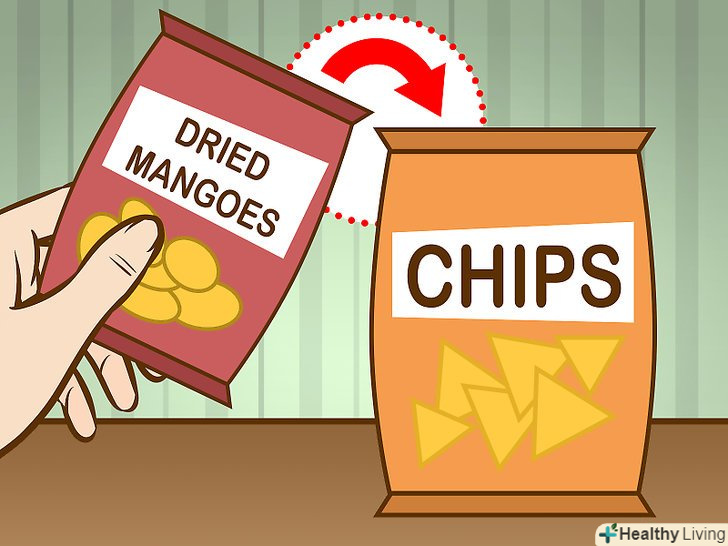 - Вийміть чіпси і сховайте куди-небудь на потім. В упаковку покладіть якісь корисні снеки. Доброю ідеєю будуть сухофрукти або капустяні чіпси.