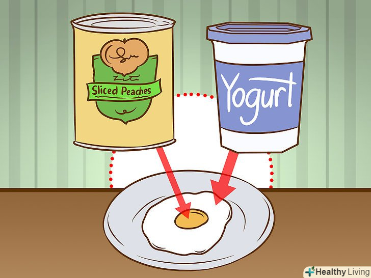Подайте своїм близьким глазунью, зроблену з йогурту і консервованих персиків. якщо зазвичай ви готуєте сніданок на всю сім'ю, така фальшива глазунья може стати відмінним жартом. Можна взяти йогурт і персики і викласти їх таким чином, щоб це стало схоже на справжню глазунью – це точно здивує ваших близьких, коли вони спробують шматочок. [5]- Викладіть на сковорідку трохи самого звичайного білого йогурту, потім в центр помістіть консервований персик, так щоб він виглядав, як жовток.