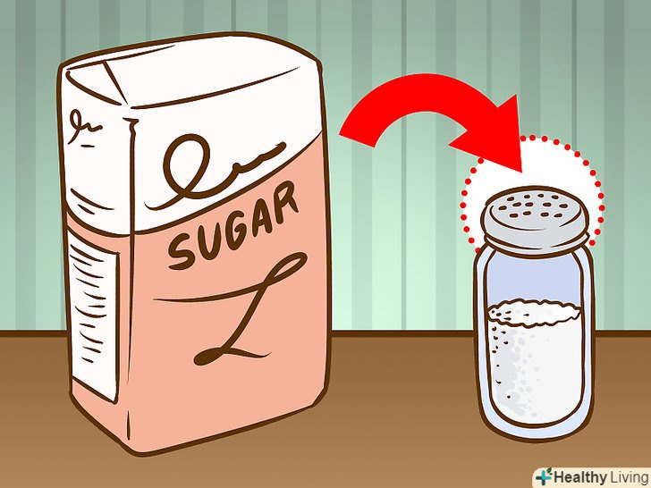 - Насипте солі в тальк. деякі наносять його на волосся. Відкрийте контейнер з тальком і підміните його сіллю або змішайте сіль з тальком. Не робіть цього з дитячою присипкою або якщо тальком користується алергік.