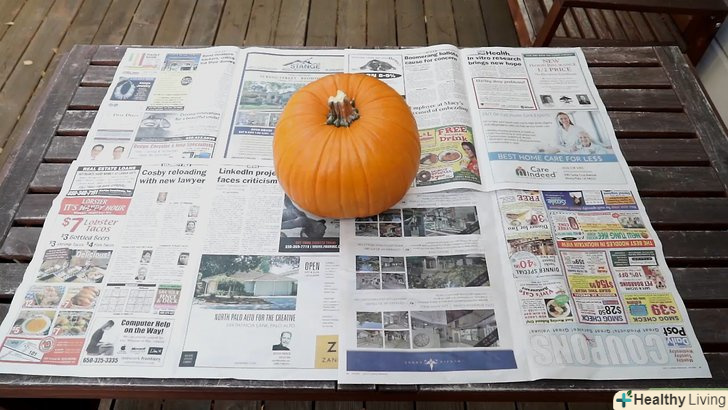 Виберіть гарбуз необхідного розміру. Якщо ви плануєте вирізати великий і складний візерунок, не забувайте, що вам доведеться докласти більше зусиль. Якщо ви хочете з дітьми просто намалювати гримаси маркером, виберіть кілька маленьких або середник гарбузів, щоб розмалювати їх по-різному.- Не купуйте гарбуз занадто рано. в основному, вони згнивають через 1,5 – 2 тижні. Тому купіть гарбуз не раніше, ніж за тиждень до Хеллоуїна.