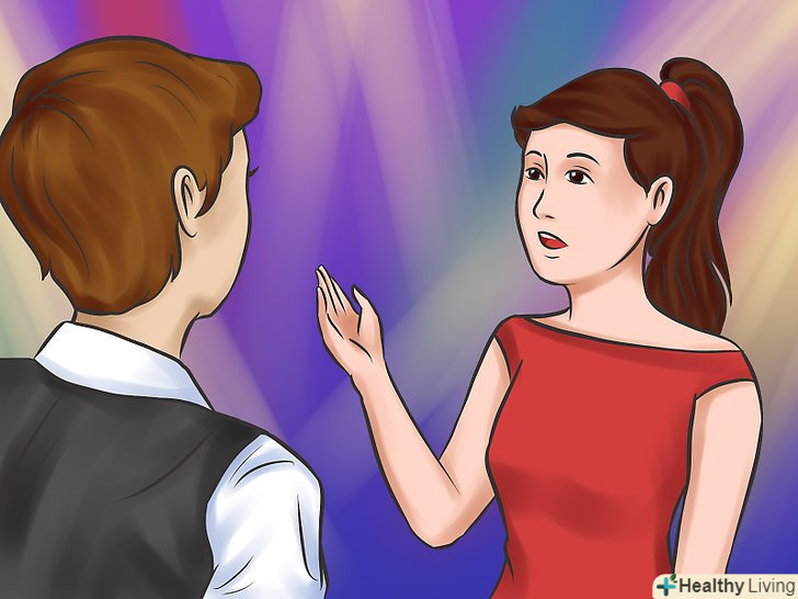 Танцюйте. Якщо ви не можете танцювати, дивитися на інших і копіюйте їх. Ви досить швидко ввійдете в смак. Просто дозвольте музиці керувати вами і нехай ваші рухи будуть мінімальними, поки не відчуєте себе впевненіше. Якщо ви вже великий Танцюрист, рухайтеся всю ніч безперервно і показуйте свою майстерність. Танці звільняють, активізують і це хороший привід, щоб бути на танцполі і знайомитися з безліччю людей. Танцюйте з подругами, друзями-хлопцями і тими, хто може танцювати; не обмежуйте себе. Коли пізніше вночі починаються повільні танці, ввічливо вибачитеся, якщо ви дійсно не знайомі з людиною; ви ж не хочете дати іншим про себе невірне уявлення.- Уникайте Танців з тими, хто може зашкодити вашій репутації. Краще не танцювати і сидіти біля бару, ніж танцювати з підозрілими особистостями.