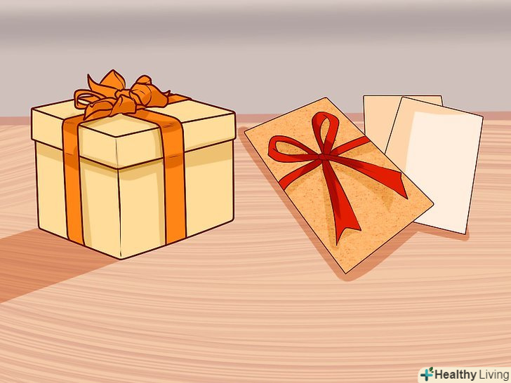Виберіть особливу подарункову упаковку. Один з найприємніших моментів — дивитися на те, як людина розгортає ваш подарунок. Зробіть упаковку незабутньою і виберіть улюблений колір або малюнок людини. В якості завершальних штрихів використовуйте стрічки, бантики та інші прикраси. [10]- Також можна проявити винахідливість і вибрати красиву коробку або мішечок з шовковим папером.