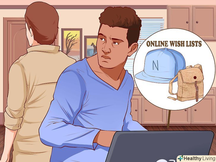 Підгляньте список бажань людини в Інтернеті. Якщо є така можливість, підгляньте список бажань в Інтернеті. Різні інтернет-магазини дозволяють користувачам створювати списки товарів, які їм подобаються і які вони хочуть купити. При зручній можливості погляньте на такий список і виберіть відповідний подарунок. [3]- Загляньте в обліковий запис тільки в тому випадку, якщо ви знаходитесь поруч і людина не буде заперечувати.