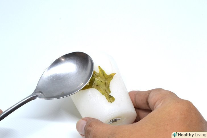 Нагрійте над полум'ям металеву ложку. запаліть зайву свічку (не ту, яку збираєтеся прикрашати). Піднесіть до полум'я денце ложки (в тому ж положенні, як ви зазвичай їсте з неї). Зачекайте кілька секунд, поки ложка не нагріється. [9]- Ложка не повинна бути занадто гарячою, щоб не обпалити ваші пальці. Її тепла повинно бути достатньо лише для того, щоб підплавити у свічки зовнішній шар воску.