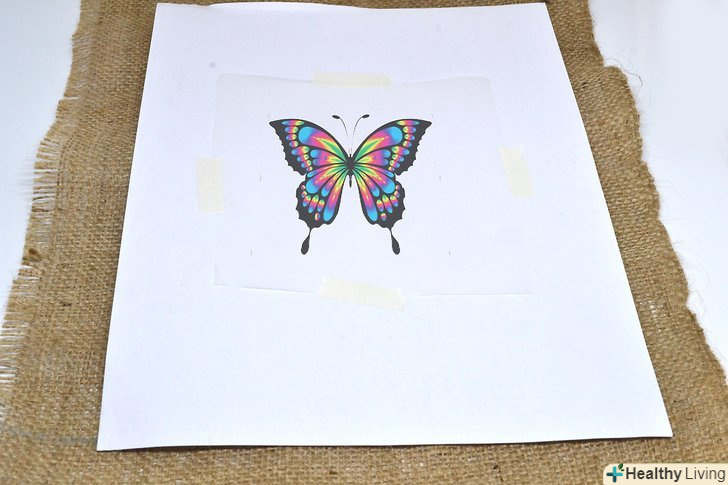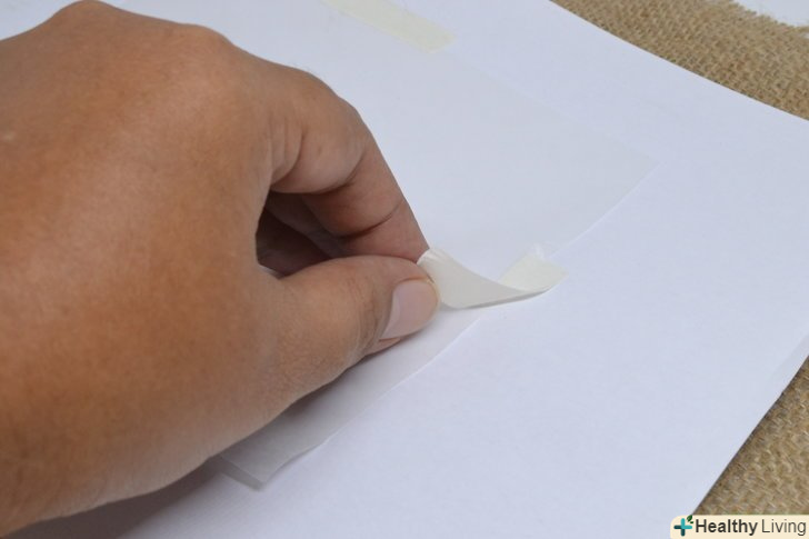 Наклейте скотчем білу паперову серветку на аркуш паперу для принтера. обріжте паперову серветку таким чином, щоб її ширина дорівнювала ширині аркуша паперу для принтера, а довжина була на 2,5–5 см більше. Загорніть надлишки довжини серветки вгорі і внизу на зворотний бік аркуша паперу для принтера і закріпіть з того боку скотчем. Так ви додасте серветці трохи більше міцності, щоб роздрукувати на ній зображення. [15]- Також можна склеїти клеєм краю серветки з краями паперового листа. [16]