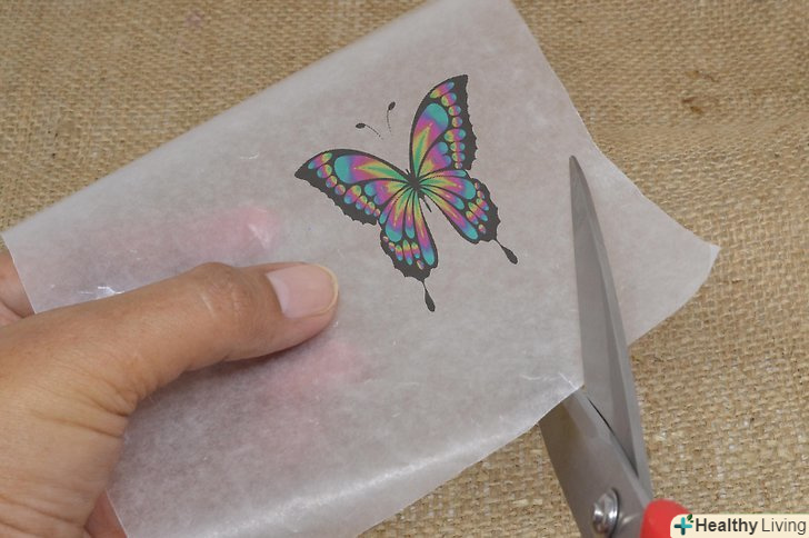 Виріжте зображення на серветці. постарайтеся різати папір максимально близько до контурів зображення. Якщо ви роздрукували слово або фразу (наприклад, любов), тоді просто обріжте папір по зовнішніх межах групи букв. Залиште те, що ви вирізали з серветки, і викиньте обрізки РЕШТИ паперу. [18]