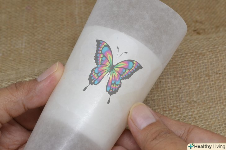 Прикладіть зображення горілиць до товстої білої свічки. при бажанні зображення можна закріпити клеїть олівцем. Переконайтеся в тому, що ви правильною стороною доклали зображення до свічки і розташували його саме так, як потрібно. [19]- Зображення необов'язково розташовувати по центру свічки. Наприклад, його можна змістити вниз.