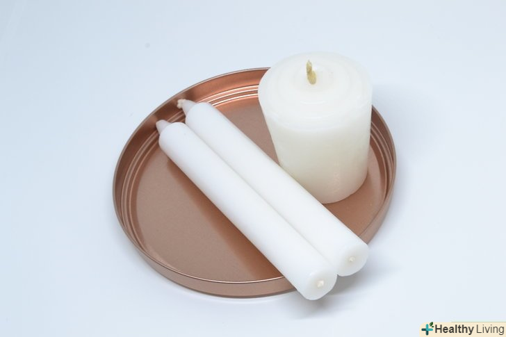 Прикрасьте білу свічку кольоровим розтопленим воском. розтопіть кольорову свічку на плиті на водяній бані. Послідовно занурюйте в розтоплений віск низ білої свічки на різну глибину, щоб створити ефект переходу кольору. Також можна взяти ложку, зачерпнути в неї топлений віск і полити їм білу свічку.- Щоб швидше розтопити кольорову свічку, розламайте її на дрібні шматочки.