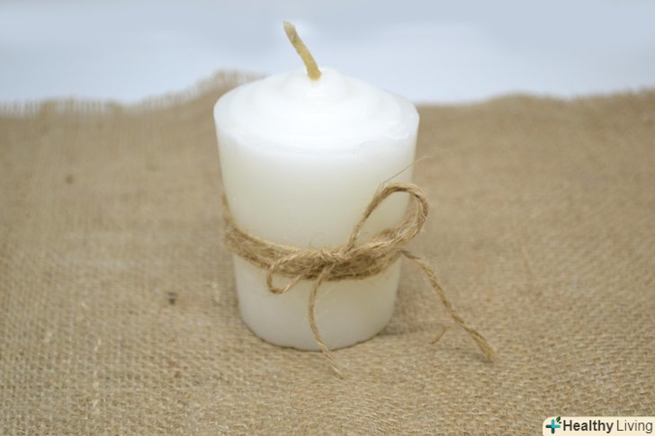 Перев'яжіть свічку посередині мотузкою, щоб створити скромне прикраса. Просто намотайте мотузку 1-3 рази посередині свічки. Зав'яжіть кінці мотузки бантиком.- Щоб зробити свічку трохи більш ошатною, підсуньте під мотузку гілочку сосни або падуба.
