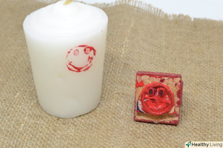 Намалюйте або віддрукуйте візерунки на свічці акриловою фарбою. протріть свічку медичним спиртом за допомогою серветки, яка не залишає після себе ворсинок. Потім покрийте її свічковим лаком і залиште сохнути на ніч. Пензлем або гумовим штампом нанесіть візерунки з акрилової фарби. Дайте фарбі висохнути, а потім при бажанні покрийте свічку додатковим шаром свічкового лаку. [25]- Свічковий лак можна придбати через Інтернет або у великих магазинах товарів для рукоділля з широким асортиментом.