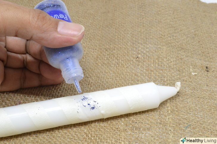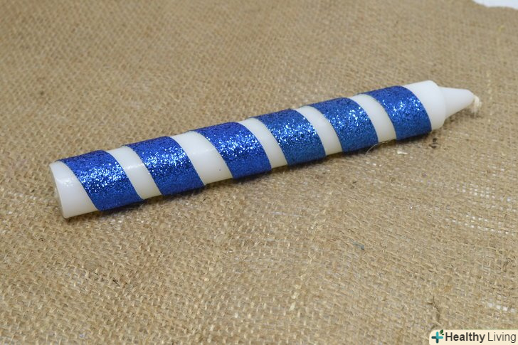 Виберіть свічку, яку слід прикрасити блискітками. товсті прямі свічки є найпопулярнішим вибором, але також можна використовувати тонкі прямі, конічні і невеликі свічки. Проте не рекомендується використовувати чайні свічки через їх малого розміру.
