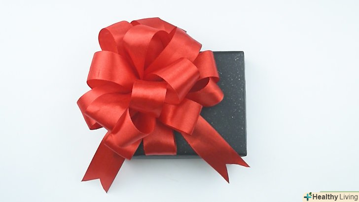 - Ви можете зав'язати бант зі шматка стрічки, не прив'язаної до упаковки. Зав'яжіть стрічку на вузол посередині, щоб отримати однакові лівий і правий кінці.
