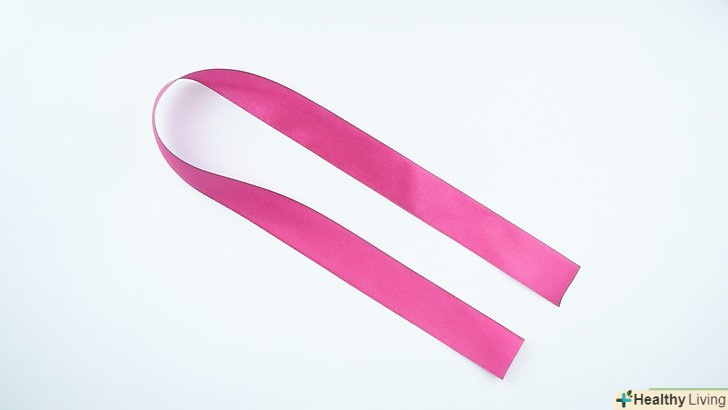 Почніть з довгого шматка стрічки. Вам буде потрібно відрізок довжиною 30 см.нехай він залишить прямим без вузла по центру.- Зробіть петлю біля лівого краю стрічки. відступите близько 7 см від кінця стрічки і сформуйте петлю. Притримуйте її великим і вказівним пальцями.