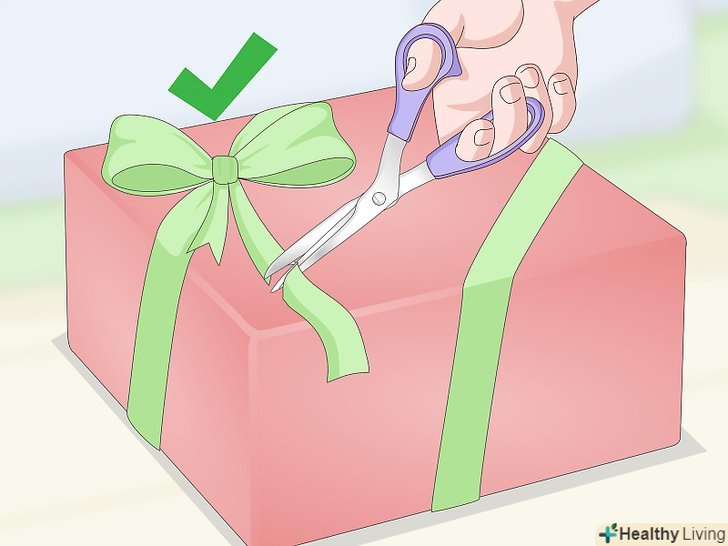 Відріжте зайву стрічку. коли бантик буде надійно зав'язаний, відріжте зайву довжину стрічки на кінчиках. Для краси можна відрізати стрічки під кутом або фігурними ножицями.