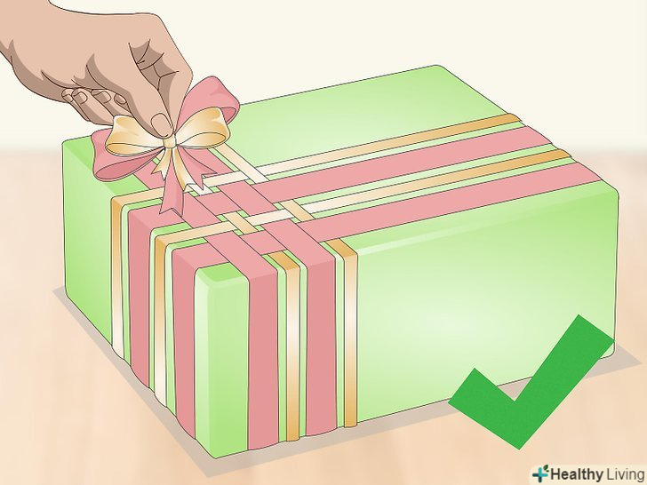 - Виберіть колір стрічки, який поєднується з подарунковою упаковкою. Наприклад, золота стрічка на червоній коробці і Срібна стрічка на блакитний.